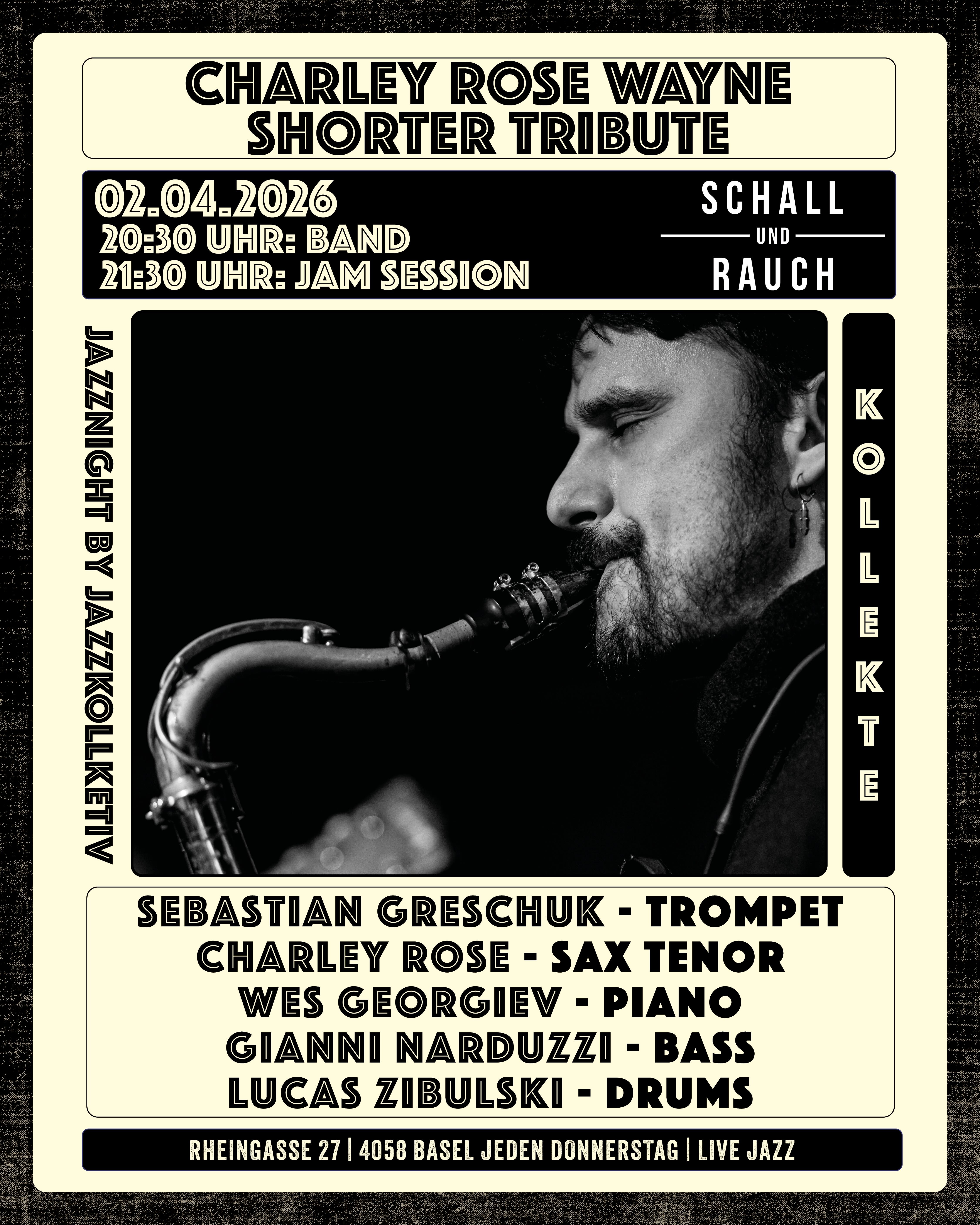 02.04.2026 | CHARLEY ROSE WAYNE SHORTER TRIBUTE | JAZZNIGHTS BY JAZZKOLLEKTIV